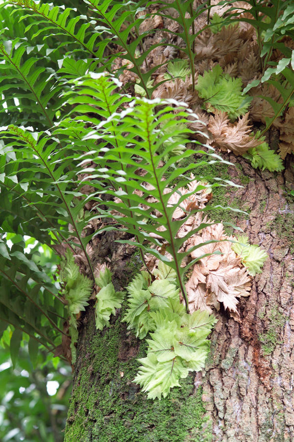 Cây sống riêng trên các hốc đá, mọc trên những đám rêu, hoặc sống trên các thân cây lớn như cày đa, cây si. Cây sống lâu năm, có thân rễ dày mẫm, phủ nhiều vẩy màu vàng, bóng. Có hai loại lá: Lá bất thụ, không cuống màu nâu, hình trứng 5-8cm, rộng 3-6cm, phía cuống hình tim, có thùy, gân nổi rõ. Lá hữu thụ, màu xanh nhẵn, đơn xẻ thùy lông chim, dài 25-40cm, cuống có dìa, có thùy thuôn, tù ở đầu, dài 5-6cm, có mạng, ổ tử nang nhiều, xếp thành một hàng ở mỗi bên gân chính, hình tròn, không có áo tử nang.